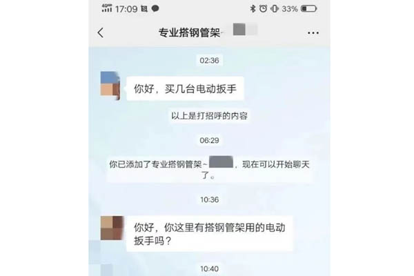 外地市民钱女士经营一家五金店,近日,有人添加钱女士为好友并称要购买货物,双方确定好购买样式,需要付款时套路出现了。