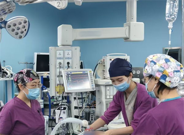手术当日,姜丽带领的麻醉团队摒弃传统全麻方案,采用“髂筋膜阻滞及股外侧皮神经阻滞+中度镇静”的精准麻醉方式,最大限度减少对老人心肺功能的影响。术中持续监测指标,确保生命体征稳定。B超引导(可视化)的神经阻滞,精准定位、精准给药,不仅使副作用减少,更能让镇痛的时间延长到术后。手术由温鑫柱和骨科李观清医生共同完成,仅用时40分钟便完成骨折复位与固定,术中出血不足50ml,创伤小、恢复快的优势尽显。