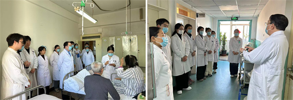 国家中医药管理局“岐黄工程”全国优秀中医临床人才方晓磊主任医师现场指导、启发式教学、经典阐发,围绕眩晕、中风、厥证的中医经典理论、中西医鉴别诊断,督导过程强调规培医师共同观摩,以点带面,提升整体教学效果。在场的规培生深受启发。