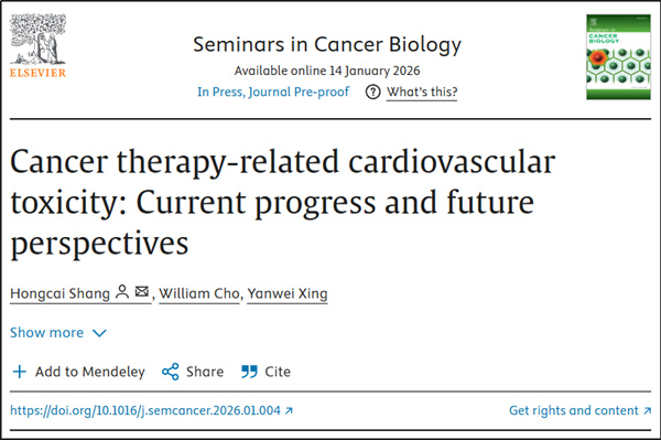 【学术动态】商洪才研究员受邀牵头组织Seminars in Cancer Biology特刊上线,系统探讨肿瘤治疗心血管毒性当前挑战与发展方向