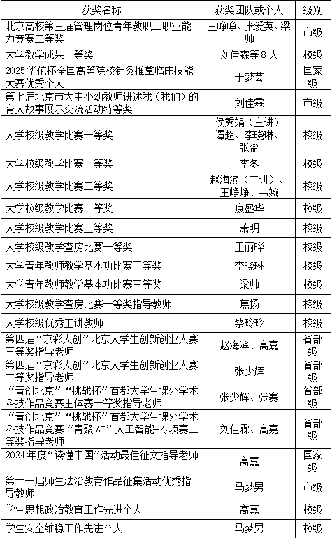 为充分调动东方医院广大教师及教育管理工作者的积极性与创造性,表彰在教育教学工作中涌现出的先进典型,根据京中东方内字(2024)9号文《北京中医药大学第二临床医学院(东方医院)教学激励制度》、《北京中医药大学东方医院中医住院医师规范化培训师资绩效评价及激励制度》 (2025 修订版)(京中东方内字(2025)42号),《北京中医药大学东方医院中医住院医师规范化培训经费管理办法》 (2025 修订版)(京中东方内字(2025)41号)结合2025年度教育教学工作实施情况,拟对以下集体与个人予以表彰。现将获奖名单公示如下: