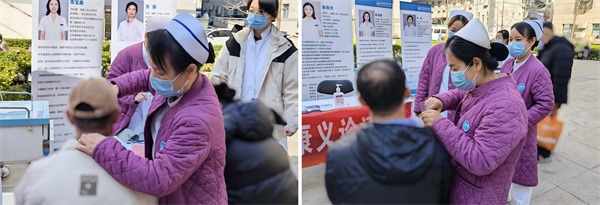 同时,在脑病二科(神经内科2)护士长胡世荣带领下,科室两名护士组成专业护理团队,为现场百余人次患者提供失眠推拿、耳部刮痧、耳穴贴压等中医外治疗法服务。义诊现场患者近距离体验到极具中医特色的失眠外治疗法,切身感受到了中医在防治疾病方面的独特魅力。